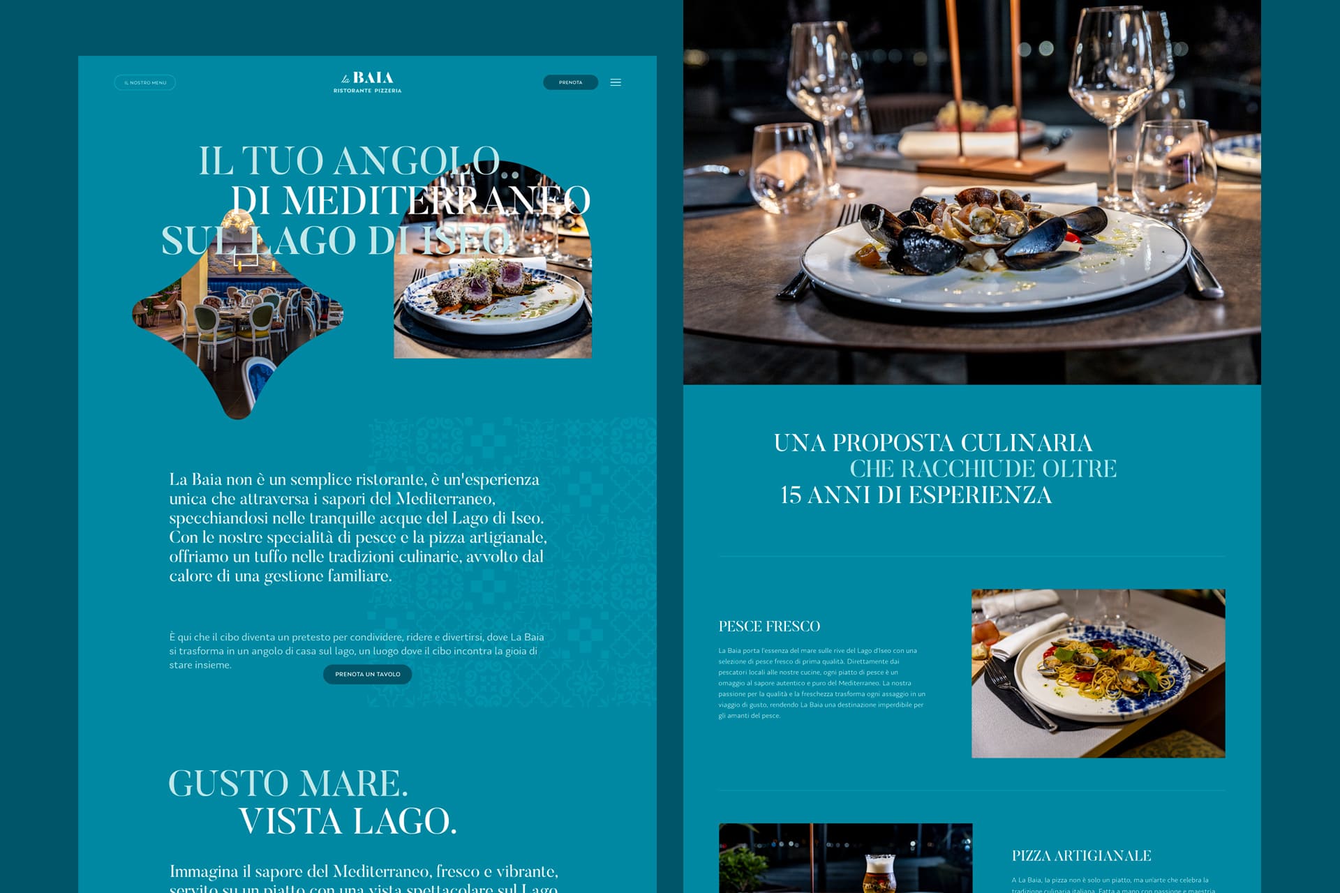Il cuore del ristorante La Baia è la cucina di pesce mediterraneo. Per questo motivo nel restyling del sito abbiamo voluto riflettere l'essenza del mare, dei suoi sapori e dei suoi profumi.