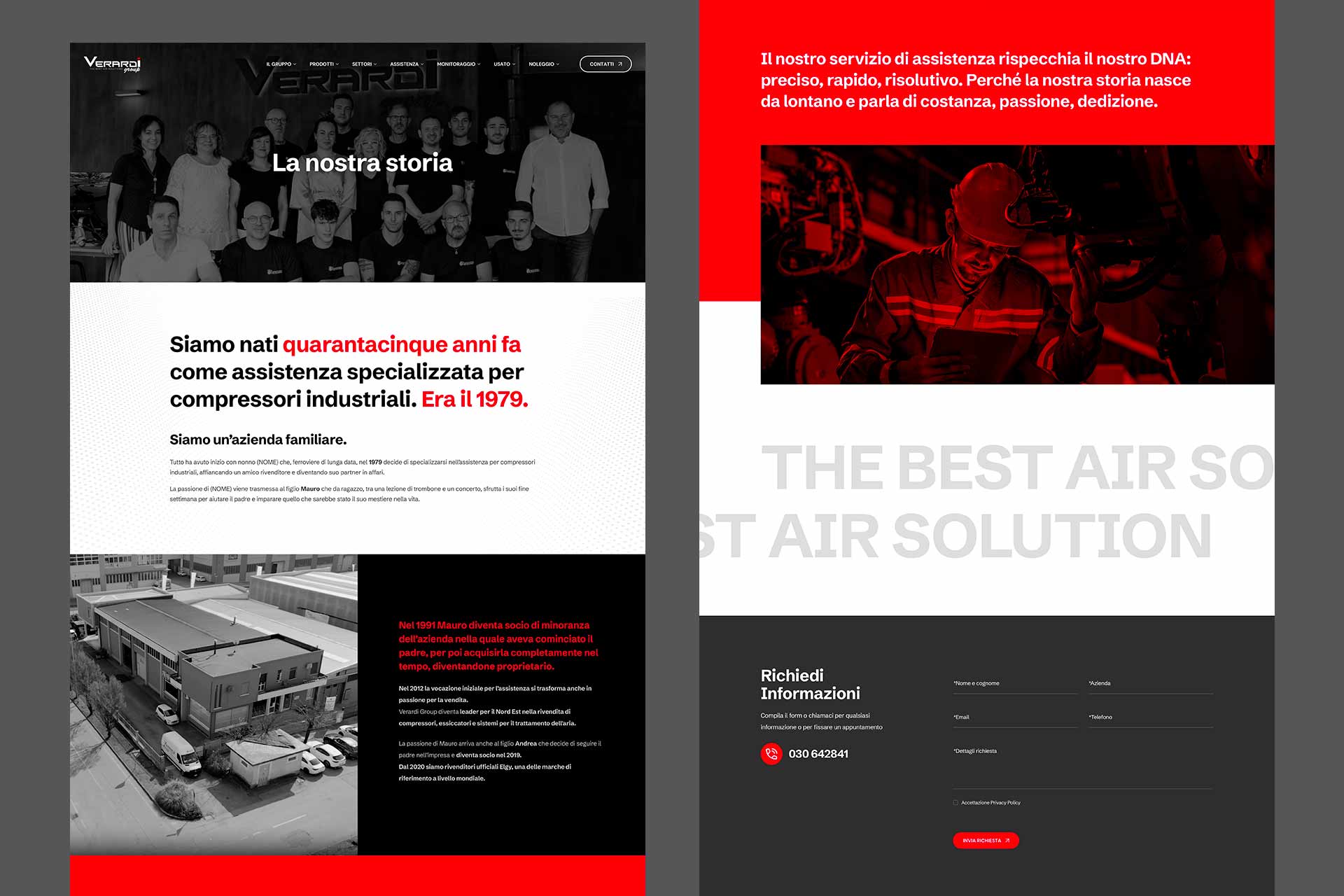 A livello di storytelling, il sito mette in evidenza tutte queste reason why. In homepage, l’utente viene accolto da un messaggio chiaro e diretto e da un video che trasmette la dinamicità del Gruppo Verardi.