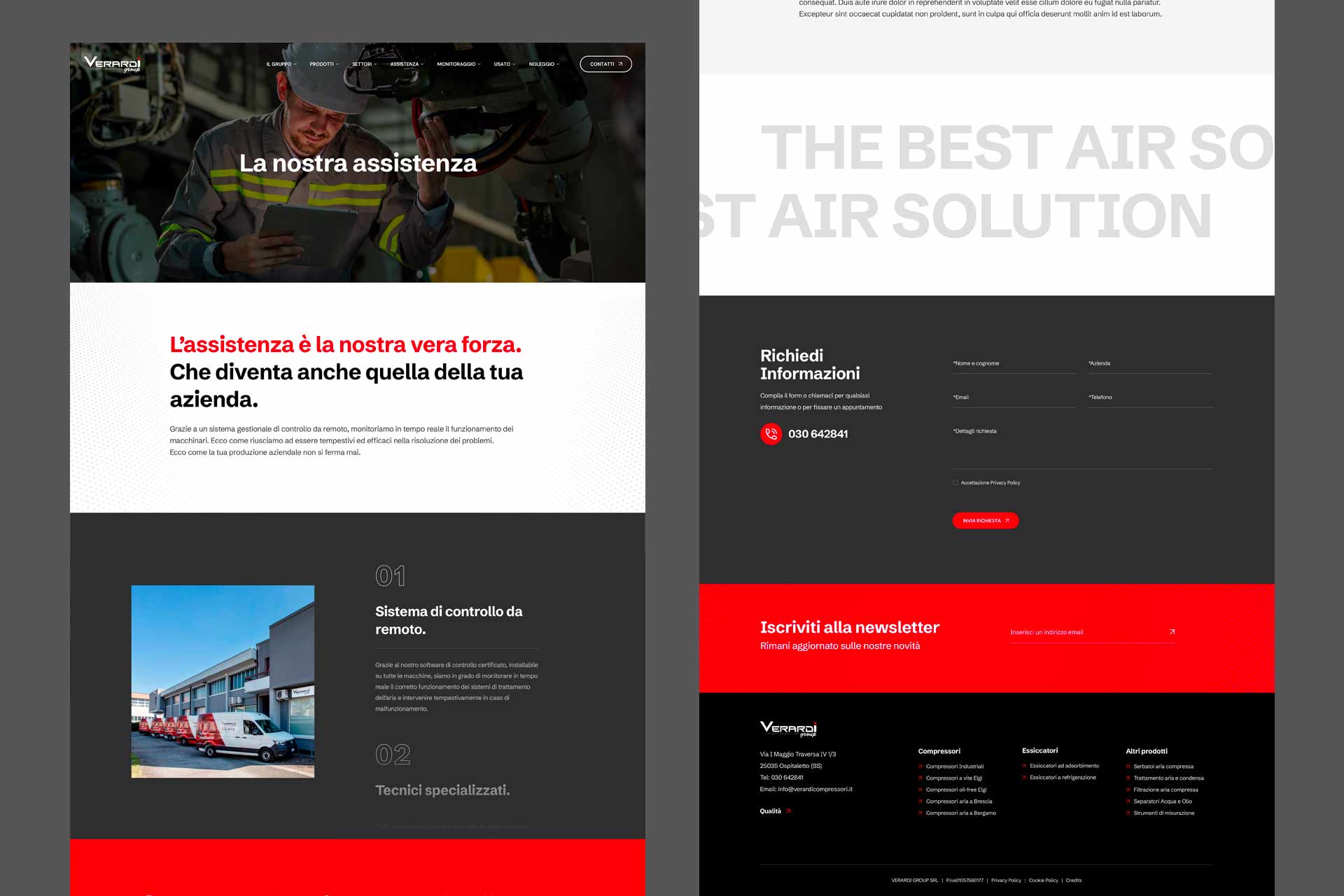 I colori scelti — nero, rosso e bianco — rafforzano l’identità visiva, mentre il claim aziendale, “The best air solution”, scorre dinamico da destra a sinistra, diventando il fil rouge che lega tutte le pagine principali del sito.
